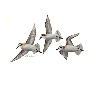 Shorebirds are relatively common and easily seen and enjoyed. They are able to share their limited shore land habitat due to different adaptations. Probing for a morsel at one depth beneath the sand is successful to one and not another, because of the length of the bill. Access to a particular food source succeeds because of long legs.